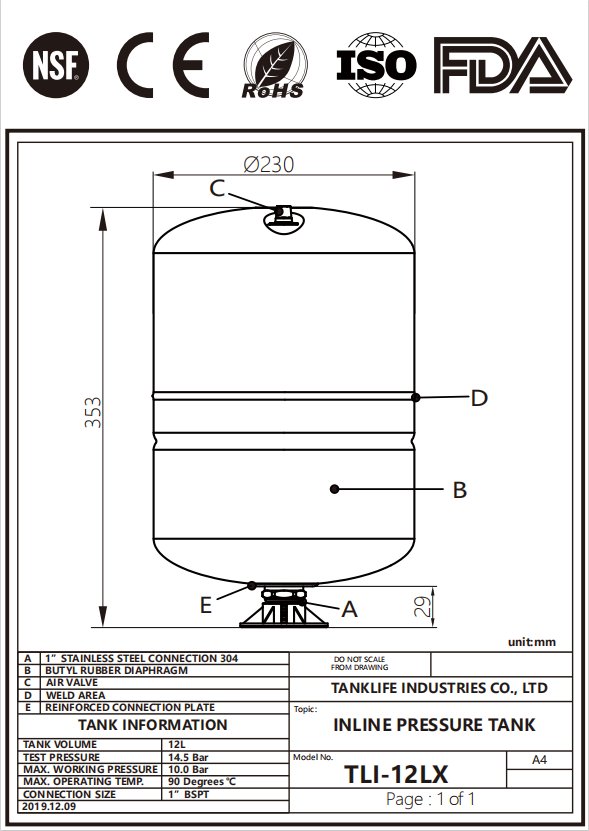 Напорный бак DirectConnect 12LX — это высокопроизводительное решение для хранения воды, сертифицированное NSF, предназначенное для требовательных систем фильтрации воды и обратного осмоса.